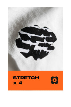 Stretch patches are made from recycled polyester. They are flexible, soft, and adapt to many shapes. These patches stay with you through movement and withstand use and washing. Easy to apply by rubbing – no sewing or ironing needed.