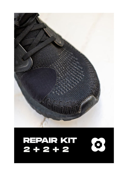 The FabPatch™ Shoe Repair Kit is designed specifically for repairing shoes. The set includes a selection of black rub-on textile patches created for high-wear areas on footwear. The flexible, abrasion-resistant material is suitable for both the inside and outside of shoes, making it easy to extend the life of sneakers and other footwear. Made in Finland.