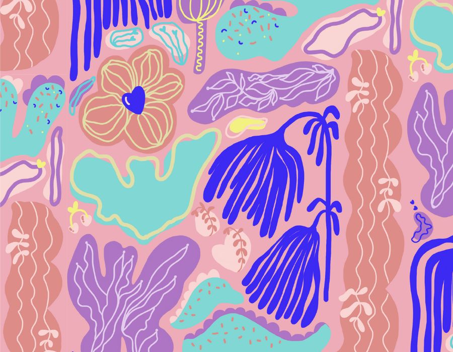 Kuosisuunnittelu on lempilapseni; työtä joka onnellistuttaa! Piirrän ja maalaan luonnokseni käsin – ja rakastan tätä mahdollisuuksia, kokeellista etsimistä ja löytämisen riemua täynnä olevaa työvaihetta.