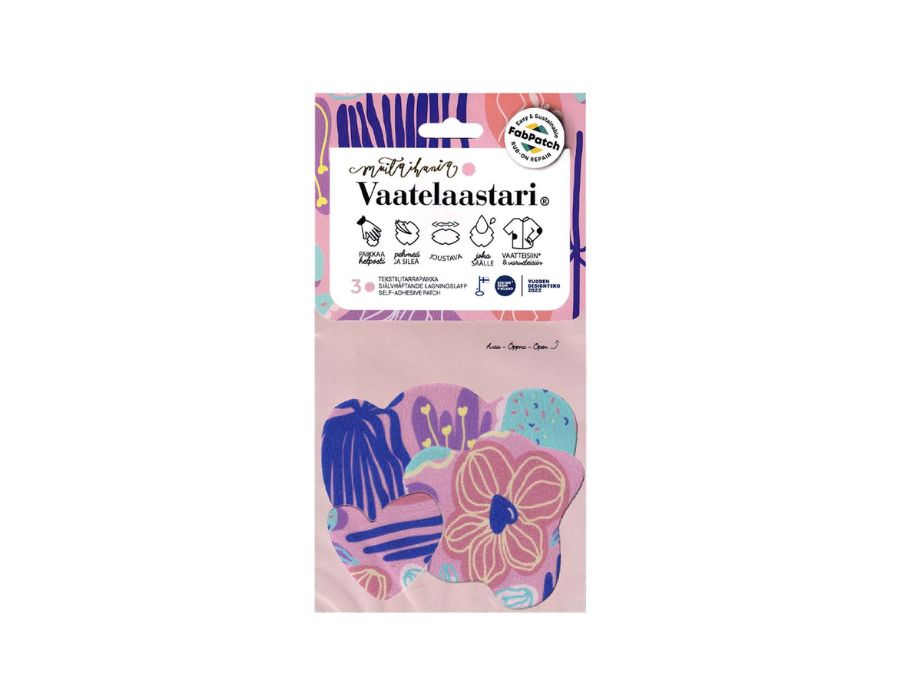 Kun paljon puuhaillaan, eivät vaatteetkaan aina välty kolhuilta – ja Christofferin aiemmin suosima ilmastointiteippikorjaus johti tahdonvastaiseen epilaatioon – joten olemme jo vuosien ajan suosineet Vaatelaastari-paikkoja. Näin matka voi jatkua, ja Ankan ihokin kiittää!