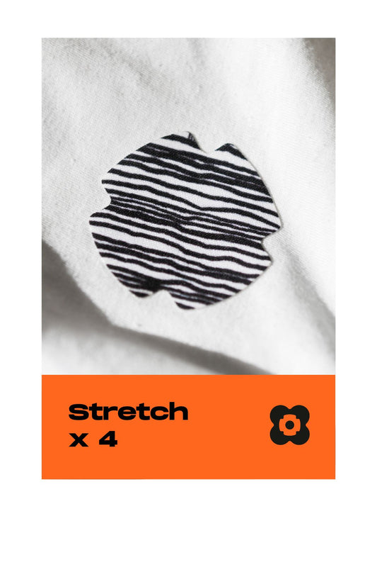 Stretch-paikat on valmistettu kierrätetystä polyesteristä. Ne ovat joustavia, pehmeitä ja mukautuvat moneen muotoon. Paikat pysyvät mukana menossa ja kestävät käyttöä sekä pesua. Kiinnitys onnistuu helposti hankaamalla – ilman ompelua tai silitystä.