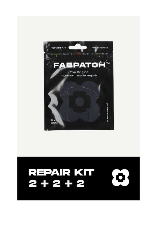 FabPatch™ Textile repair kit on täydellinen valinta mukaan matkoille ja seikkailuun. Repair kitin hankaamalla kiinnittyvillä paikoilla korjaat monipuolisesti vaatteet ja varusteet, jopa heti paikan päällä!
